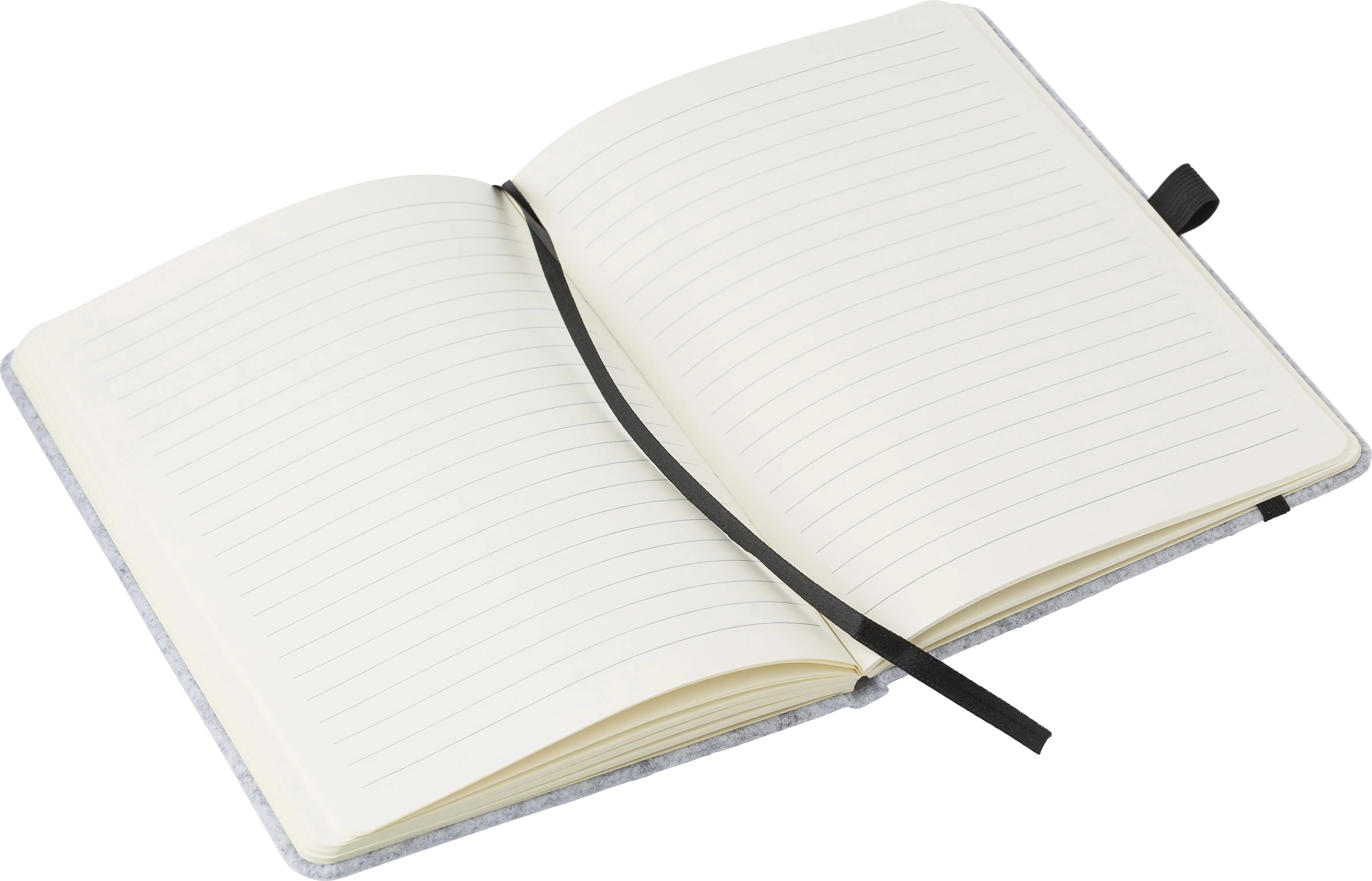 €3.04rPET felt notebook (A5), with 160 lined pages, pen loop, ribbon marker, and elastic band over the cover. The paper in this notebook is FSC® Mix certified.