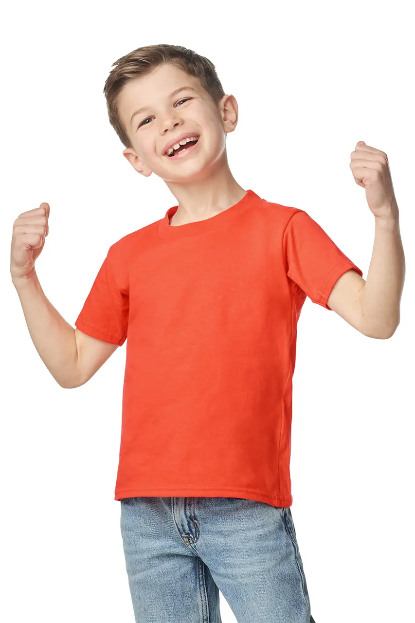 100% prstenasto pređen pamuk, 183,0 g/m² (bijeli 180,0 g/m²) Izrađen od našeg mekog prstenasto pređenog pamuka i mješavine pamuka, visoka gustoća šavova Softstyle tkanine nudi glatku površinu za tisak Klasična širina, rebrasti ovratnik Traka na vratu i ramenima za udobnost i trajnost Moderan klasičan kroj, bez šavova - bočni šav na veličini Small i Extra Small Visoko učinkovita crna odvojiva etiketa koja prelazi na reciklirani materijal U skladu s CPSIA praćenjem etiketa Prateći stilovi: GI65000, GIL65000 Kliknite ovdje za preuzimanje vodiča za veličine dječje odjeće GILDAN! Mješavina pamuka/poliestera za neke boje