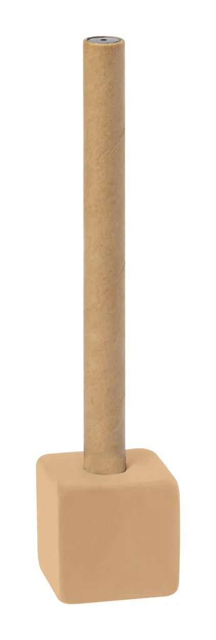 Dugotrajna olovka bez tinte od recikliranog kartona s vrhom od metalne legure, koji oksidira papir. Ova olovka piše slično kao olovka, a također je i brisiva. S kockastim držačem 2 u 1 i gumicom.
