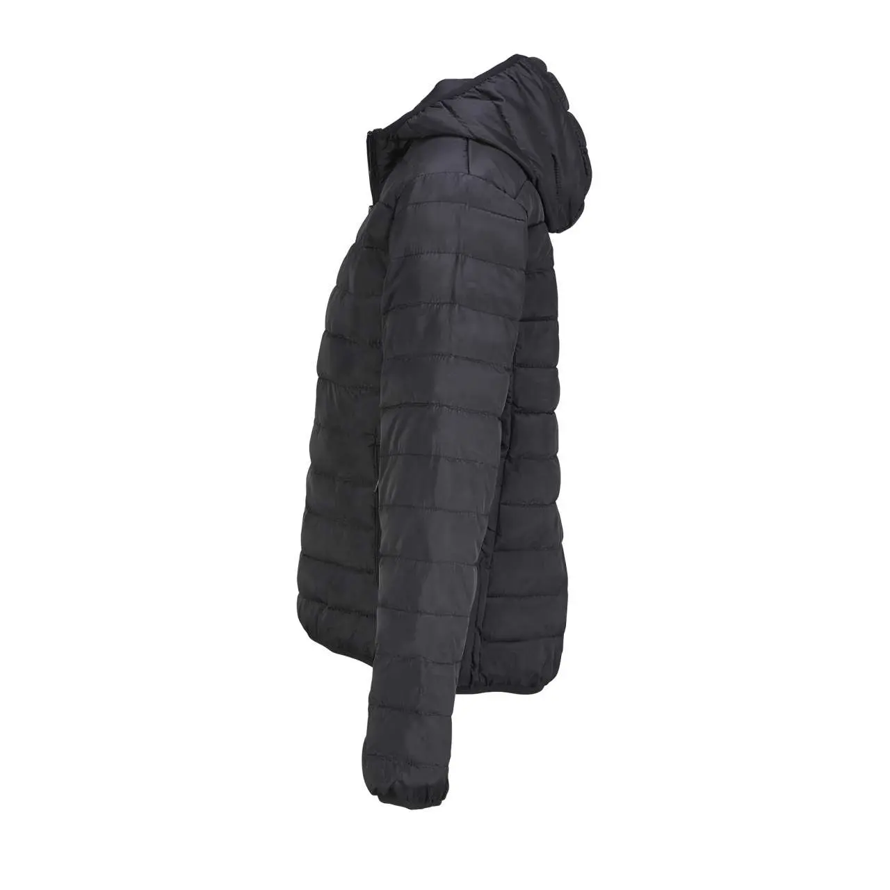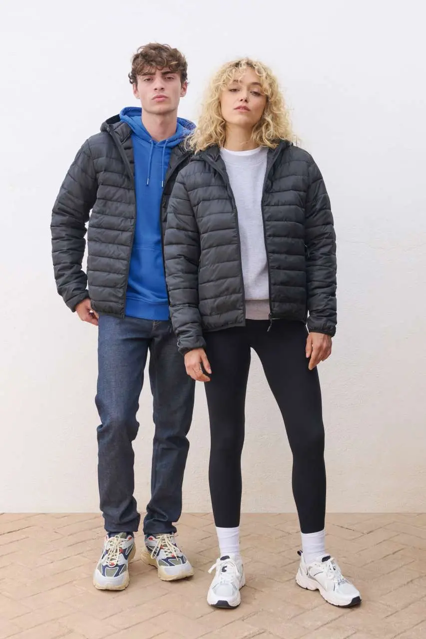 taffeta 280T, vanjska tkanina i podstava od 100% recikliranog poliestera, punjenje od 100% poliesterskog paperja, prednje kopčanje i bočni džepovi s najlonskim patentnim zatvaračem u istoj boji, metalni klizači u istoj boji s crnim ukrasnim privjescima, kapuljača s elastičnim otvorom, elastična traka u istoj boji na manšetama i donjem rubu