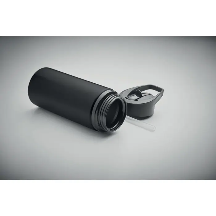 Boca od recikliranog nehrđajućeg čelika (90% recikliranog nehrđajućeg čelika i 10% nehrđajućeg čelika) s jednostrukim zidom, preklopivim otvorom za piće, slamkom i poklopcem s ručkom za nošenje. Kapacitet: 500 ml. Budući da je boca s jednostrukim zidom, još uvijek može doći do prijenosa topline.