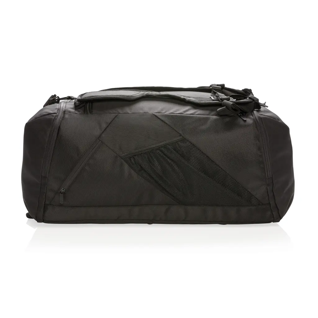 €34.95Lagana 2-u-1 torba od 1680D i 600D poliestera može se koristiti kao ruksak ili sportska torba s prostranom glavnom pregradom s gornjim U-zip zatvaranjem bočnom pregradom za obuću ili prljavu odjeću i bočnim džepom s patentnim zatvaračem stražnja strana s džepom za bocu i džepom za brzi pristup prednji džep s patentnim zatvaračem s 2 RFID zaštićene pregrade podesive naramenice PVC free NFC (13,56 MHz) blokada