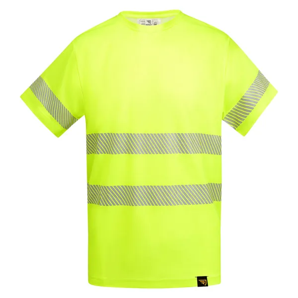 €18.81Breathable high-visibility short-sleeved t-shirt. ·Polyester-cotton blend with cotton feel. ·Two segmented strips on the body and one on the sleeves. ·Collar in the matching fabric. ·Taped neckline. ·Available in solid or contrast colour options. ·Outer Roly WRK label.·Wash cycles: x25