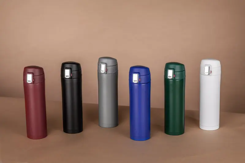 The 440 ml LOCK MAT thermal mug is a reliable companion on the move and in the office. Thanks to its double wall with vacuum insulation, it keeps drinks hot for a long time and the outer surface does not heat up, protecting your hands from burning. The flip-top lid with top-opening flap allows for convenient drinking and a tight seal - the cup does not leak even in a bag. The "press" opening mechanism makes it easy to use with one hand. The matt finish gives it a modern look and the new colours make it easy to match the brand identity. The product can be branded with a logo, creating a practical and aesthetically pleasing advertising gadget.