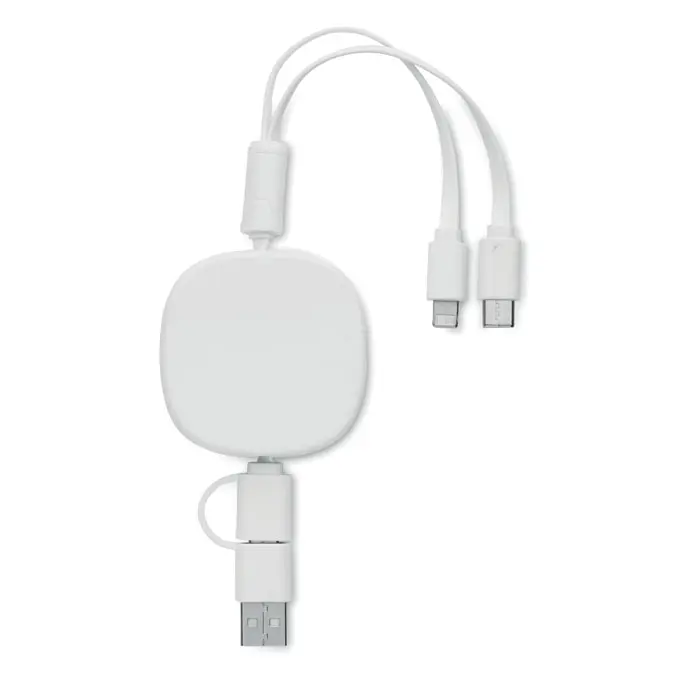 €3.09Višenamjenski USB kabel za punjenje s uvlačenjem od ABS-a s gornjim dijelom od bambusa, ulaz: 2-u-1 Type-C i Type-A, izlaz: Type-C i 2-u-1 micro-B priključak, duljina kabela 90 cm