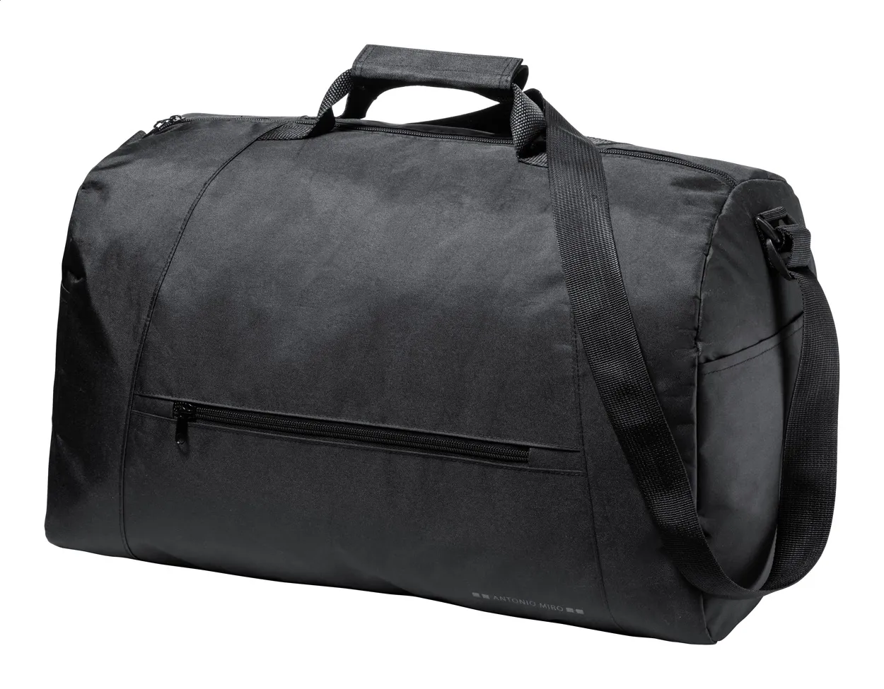 Sportska torba s glavnim pretincem na patentni zatvarač, bočnim i prednjim džepovima, ručkama za nošenje i podesivom naramenicom. Materijal: 300D poliester. Proizvod marke Antonio Miro.