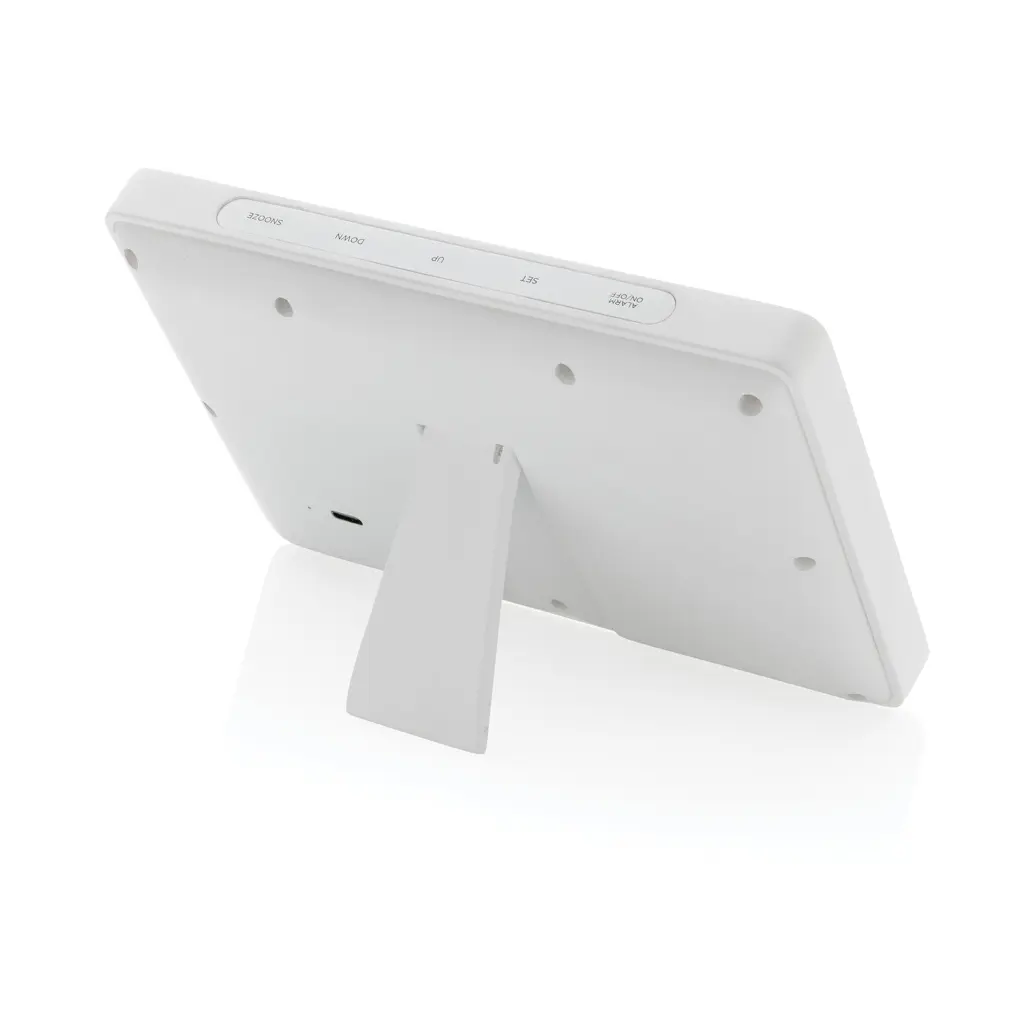 Veliki LED sat izrađen od RCS (Recycled Claim Standard) certificiranog recikliranog ABS-a i FSC® 100% bambusa ukupni udio recikliranog materijala: 76% visokokvalitetni LED zaslon funkcije: sat, alarm, odgoda, temperatura, 12/24 satna opcija uključuje 100 cm type C kabel za punjenje od RCS certificiranog recikliranog TPE-a isporučuje se u FSC® mix kraft kutiji