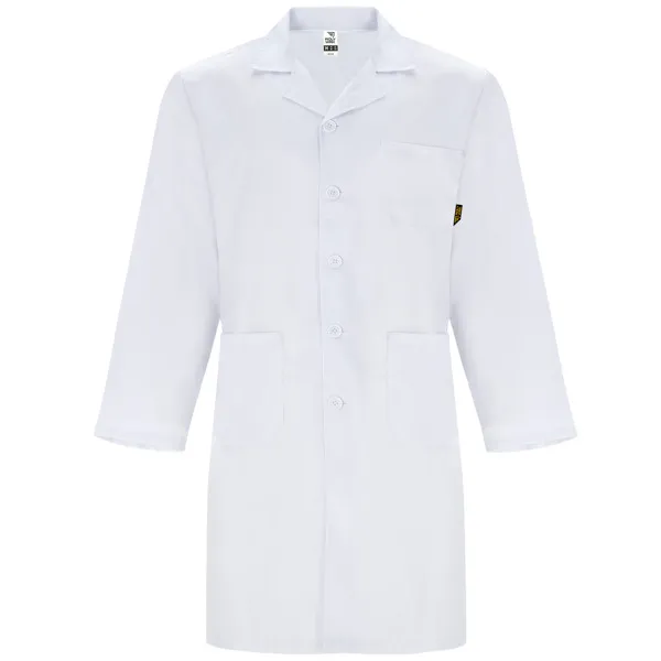 Unisex lab coat with lapel.· Front opening with tone-on-tone plastic buttons.· Two front patch pockets.· Left chest patch pocket.· Back belt at waist level.· Outer Roly WRK label.