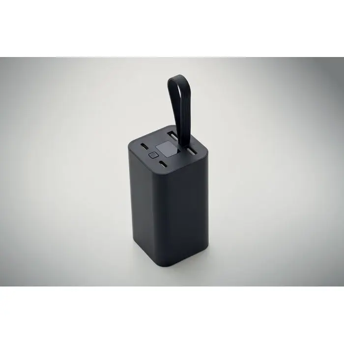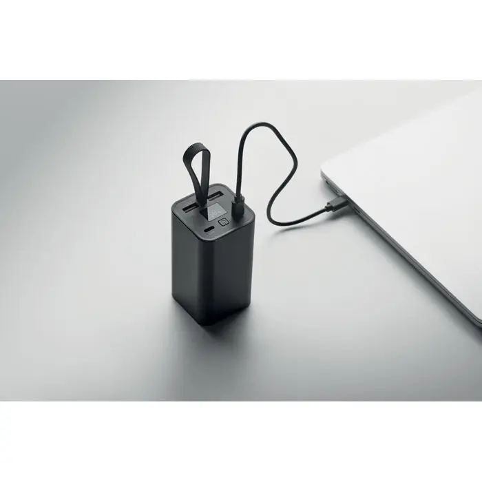 €41.25Powerbank od recikliranog aluminija kapaciteta 20.000 mAh s digitalnim prikazom napunjenosti i silikonskom kukicom, dva Type-C i dva USB-A izlaza s PD 65W brzim punjenjem
