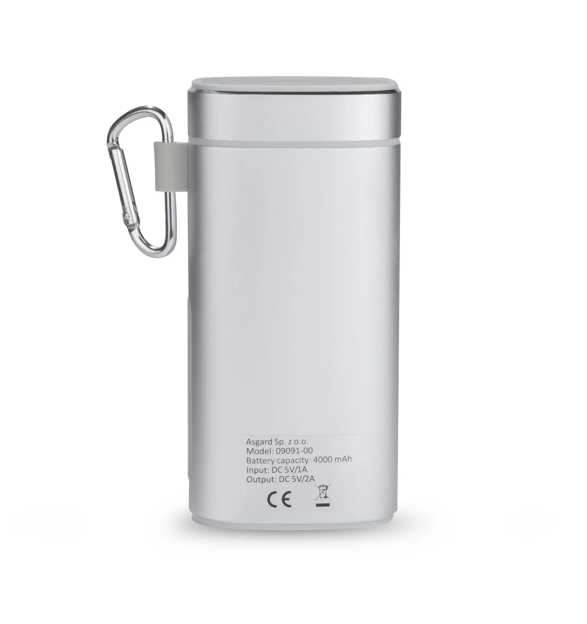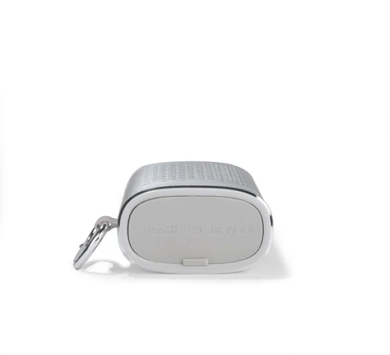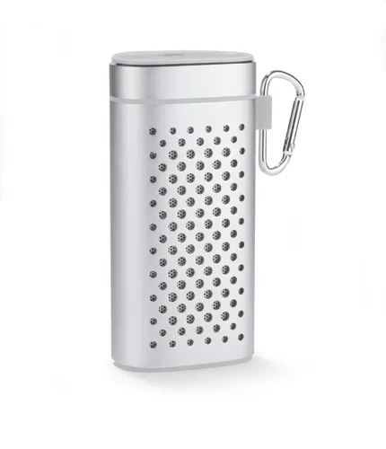 Bežični zvučnik s powerbankom kapaciteta 4000 mAh izrađen od metala može se koristiti kao hands-free set glazba se reproducira putem Bluetootha (verzija 4.2), audio kabela s 3,5 mm priključkom (nije uključen) ili micro SD kartice IPX4 vodootpornost štiti od prskanja i kapanja vode do 10 litara u minuti proizvod je u skladu s relevantnim EU direktivama, ima CE oznaku i jamstvo 1 godinu uključuje micro USB kabel za punjenje i karabiner tehničke specifikacije: ulaz 5V/1A, izlaz 5V/2A, litij-polimer baterija, izlazna snaga 5W, 3D stereo efekt i pojačanje basa, napon 5V, omjer signal/šum ≥ 80 dB, radno vrijeme 10-15 sati